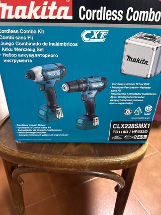 Kit combinado de herramientas inalámbricas Makita. - Incluye taladro percutor y atornillador de impacto. - Modelo CLX228SMX1. - Incluye maletín de transporte. - TD110D / HP333D.2 baterias de 4 amp de 12 voltios