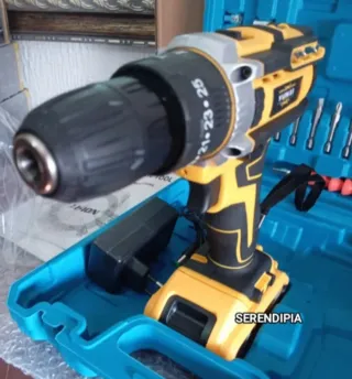 Taladro atornillador de la marca Yunxi, ideal para trabajos de bricolaje y reparaciones. Incluye baterías y cargador. Potencia 21V - Mango ergonómico para un agarre cómodo. - Diseño compacto y ligero. - Incluye maletín para transporte y almacenamiento. - Incluye juego de brocas.
