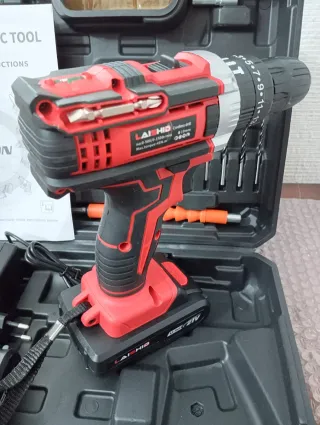 Taladro atornillador a batería de la marca LAISHID. - Incluye dos baterías de 18V. - Cargador de batería. - Juego de puntas. - Manual de instrucciones. NUEVO A ESTRENAR