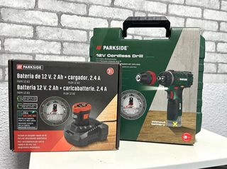 Se vende atornillador taladradora inalámbrico Parkside de 12V, modelo PLGK 12 A2, junto con una batería de 2Ah (PAPK 12 A3) y su cargador de 2.4A. ▪️Incluye batería de iones de litio de 2Ah. ▪️Cargador rápido con desconexión automática. ▪️Tecnología Cell Balancing para mayor autonomía y vida útil de la bateria. 📦Nuevo a estrenar realizamos envios📦