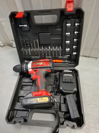 🔴 SOLO ENVÍOS 🔴 Nuevo a estrenar. LAISHID Taladro atornillador inalámbrico con dos baterías. En su maletín de transporte. Imágenes reales. Color rojo. Taladro atornillador inalámbrico multifuncional con 2 baterías recargables de 21 V. Dos velocidades. Mandril 10 mm. Par de apriete de 45 Nm con 25+1 ajustes del par. 1500 RPM Atornillador,desatornillador y función percutor. Taladro. Luz LED. Unidades disponibles. Para más cantidades consultar.