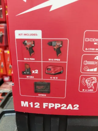 Kit de herramientas Milwaukee M12 Fuel. - Incluye maletín de transporte. - Modelo M12 FPP2A2. -TALADRO FPD2 -Atornillador de impacto m12 fid2 -2 baterias de 4ah cargador y maletin precio final iva incluido hacemos envíos y lotes más artículos en mi perfil precios no negociables no esperes a verlo reservado unidades limitadas
