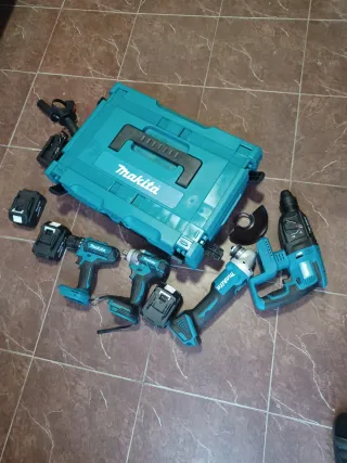 Se vende kit de herramientas Makita de . - Taladro percutor - Amoladora angular - Atornillador de impacto - Cargador - Accesorios