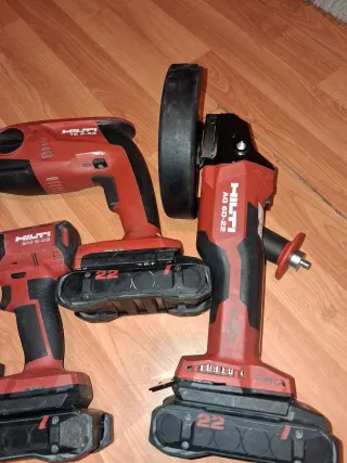Vendo kit de herramientas Hilti compuesto por: - Martillo perforador Hilti TE 2-22. - Amoladora Hilti AG 6D-22(150)mm -Taladro atornillador Hilti SF4H-22 -Atornillador de inpacto Hilti SID6-22 - Cargador Rapido Hilti C 6-22. - Cuatro Baterías B85 (4.0)Ah -Bolsa de transporte Todo en perfecto estado I funcionamiento plataforma nuron Milwaukee dewalt metabo makita bosch wurth hikoki berner festool