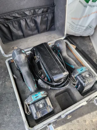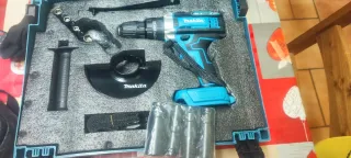Set de herramientas eléctricas Makita, ideal para trabajos de bricolaje y profesionales. - Taladro percutor inalámbrico. - Atornillador de impacto. - Baterías incluidas. (3 baterías portátiles) Cualquier duda consultar
