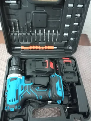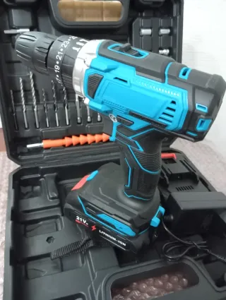 🔴 SOLO ENVÍOS 🔴 Nuevo a estrenar. Compatible con baterías makita. Taladro atornillador inalámbrico con dos baterías. En su maletín de transporte. Imágenes reales. Color azul. Taladro atornillador inalámbrico multifuncional con 2 baterías recargables de 21 V. Dos velocidades. Mandril 10 mm. Par de apriete de 45 Nm con 25+1 ajustes del par. 1500 RPM Atornillador,desatornillador y función percutor. Taladro. Luz LED. Unidades disponibles. Para más cantidades consultar.
