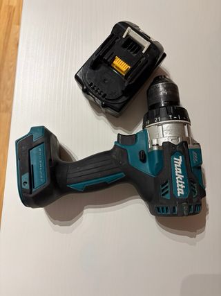 Taladro percutor Makita DHP486 con motor sin escobillas. Muy poco uso, unas 20 horas máximo, Se entrega con una Batería Sin Cargador - Modelo: DHP486 año 2023 - Tecnología Brushless (sin escobillas) - Batería LXT 18 V Cuenta con un motor sin escobillas (BL) para mayor eficiencia y durabilidad. Ofrece 3 funciones: atornillado, taladrado y taladrado por impacto. Tiene un alto par de apriete máximo, alcanzando aproximadamente 130 Nm. Dispone de 2 velocidades mecánicas y un portabrocas automático totalmente metálico