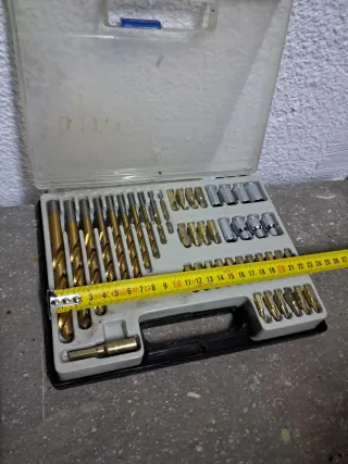Este set incluye una variedad de brocas y puntas para tus proyectos. - Brocas de metal dorado. - Puntas para atornillar. - Incluye un adaptador.