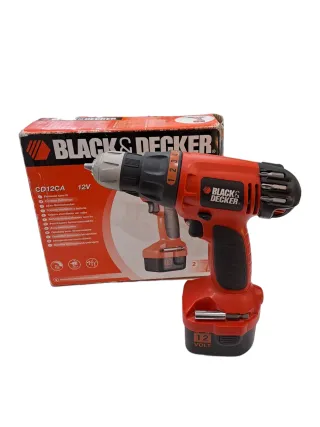 Taladro atornillador inalámbrico Black & Decker. - Modelo CD12CA. - Voltaje de 12V. - Incluye selector de 2 velocidades. - Mango ergonómico para mayor comodidad.