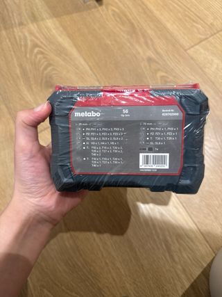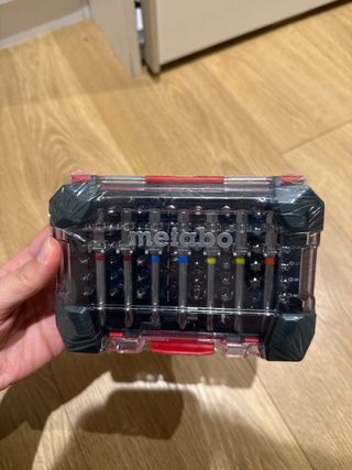 Set de 56 puntas de diferentes tipos y tamaños de la marca Metabo. Incluye puntas para atornillar y taladrar. - 56 piezas en total. - Estuche organizador transparente. - Puntas de alta calidad para diversas tareas.