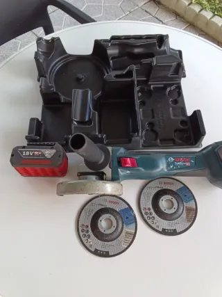 AMOLADORA RADIAL BOSCH PROFESIONAL MODELO GWS 18V-10 MOTOR BRUSHLEES DE 125 MM DISCO CON BATERÍA BOSCH DE 18 V Y 6,0 AH CON INDICADOR DE CARGA CON DOS DISCOS BOSCH NUEVOS FUNCIONA PERFECTAMENTE Bosch Wurth Milwaukee Dewalt Makita Metabo Hilti Atornillador Taladro Berner