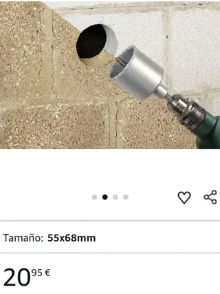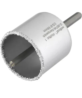 wolfcraft Corona de perforación recubierta de carburo de tungsteno, con adaptador I 3896000 I Para instalaciones sanitarias y eléctricas en paredes de ladrillo y piedra; profundidad de corte: 55 mm. Corona de perforación recubierta de carburo de tungsteno para taladros en paredes de ladrillo y piedra, con vástago hexagonal para el uso en taladradoras y atornilladores a batería Disponible en diferentes diámetros; profundidad de corte: 55 mm. con adaptador disponible por separado (art. 3862000) para taladros profundos y taladros de penetración Con adaptador y broca centradora (Ø 8 mm), preinstalados para el uso inmediato