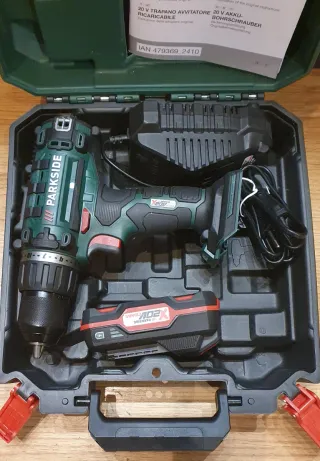 Taladro atornillador recargable Parkside Performance 20V. - Incluye taladro, 1 batería (2Ah) y cargador. - Baterías compatibles con toda la serie X20V Team. - Incluye maletín de transporte. Producto nuevo a estrenar tags: Lidl, Bosch, Maquita, Dewalt, Stayer, Inverter, Hilti, Worx, Metabo, Einhell, carpintero, carpintería, batería, pintór, pintura, reforma, obra, metal, percusión, radial, amoladora, sierra caladora circular laser, compresor, llave, atornillador, atornilladora, soldar, soldadura, aparato, pistola, grapadora, lijadora herramienta compresor, ingletadora
