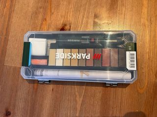 Set de Reparacion de suelos laminados y parque. Para arreglar y reparar superficies de madera y plástico como por ejemplo: suelos laminados, parque, corcho, vinilo, etc Apto para todos los tonos de madera. Envíos a través de Wallapop Tag: bosch, parkside, madera, hierro, cuchillas, bricolaje, DeWalt, Stayer, Black Decker, Worx, Lidl, circular, amoladora, taladro, radial, atornillador, martillo, lijadora, laser, impacto, 4 ah, jardin, cortacesped, piscina, rama, árbol, cortasetos, cesped, cargador, lidl, batería, 2 ah, taladradora, martillo, soplahojas, soplador, cepillo, impacto, banda, recargable, batteria