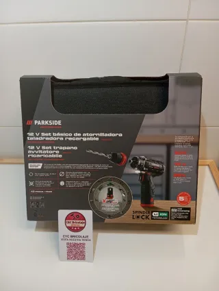 Set de taladro atornillador recargable Parkside de 12V con 2 baterías y cargador incluidos más 3 Set de brocas y puntas incluidos. - Incluye 43 piezas. - Tecnología Spindle Lock. - Motor Brushless. - Batería Li-Ion. tags: Lidl, Bosch, Maquita, Dewalt, Stayer, Inverter, Hilti, Worx, Metabo, Einhell, carpintero, carpintería, batería, pintór, pintura, reforma, obra, metal, percusión, radial, amoladora, sierra caladora circular laser, compresor, llave, atornillador, atornilladora, soldar, soldadura, aparato, pistola, grapadora, lijadora herramienta compresor, ingletadora, impacto, fresadora, broca, aspiradora, taladro martillo,bricola