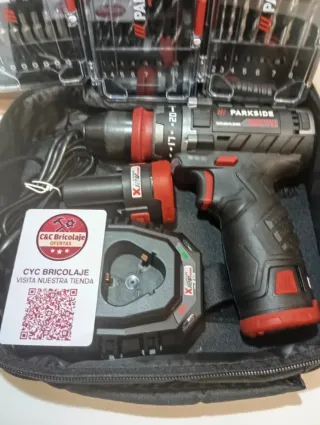 Taladro atornillador recargable Parkside 12V con 2 baterías y cargador más muchos accesorios. - Incluye maletín. - Motor sin escobillas. - Tecnología Ion Lithium. - 43 piezas. tags: Lidl, Bosch, Maquita, Dewalt, Stayer, Inverter, Hilti, Worx, Metabo, Einhell, carpintero, carpintería, batería, pintór, pintura, reforma, obra, metal, percusión, radial, amoladora, sierra caladora circular laser, compresor, llave, atornillador, atornilladora, soldar, soldadura, aparato, pistola, grapadora, lijadora herramienta compresor, ingletadora, impacto, fresadora, broca, aspiradora, taladro martillo,bricolaje,manualidades,lienzos