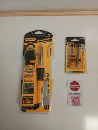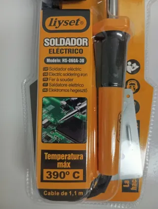 Kit de soldadura eléctrica de 30W con recambios de hilo. - Soldador eléctrico Liyset PRO TOOLS. - Potencia: 30W. - Temperatura máxima: 390°C. - Cable de 1,1m. - Incluye dos carretes de hilo para soldar. - Modelo de soldador: HS51910. tags: Lidl, Bosch, Maquita, Dewalt, Stayer, Inverter, Hilti, Worx, Metabo, Einhell, carpintero, carpintería, batería, pintór, pintura, reforma, obra, metal, percusión, radial, amoladora, sierra caladora circular laser, compresor, llave, atornillador, atornilladora, soldar, soldadura, aparato, pistola, grapadora, lijadora herramienta compresor, ingletadora, impacto, fresadora, broca, aspiradora, taladr