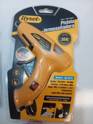 Set de pistola de silicona y barras de pegamento. - Pistola termoselladora Liyset. - Modelo HS-5019. - Potencia: 12W (inicio 30W). - Incluye 16 barras de silicona de 7mm. tags: Lidl, Bosch, Maquita, Dewalt, Stayer, Inverter, Hilti, Worx, Metabo, Einhell, carpintero, carpintería, batería, pintór, pintura, reforma, obra, metal, percusión, radial, amoladora, sierra caladora circular laser, compresor, llave, atornillador, atornilladora, soldar, soldadura, aparato, pistola, grapadora, lijadora herramienta compresor, ingletadora, impacto, fresadora, broca, aspiradora, taladro martillo,bricolaje,manualidades,lienzos