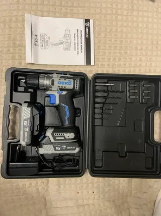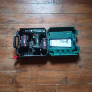 Taladro Parkside en su maletín original. El taladro está solo usado para probarlo está como nuevo. - Incluye dos baterías. Una de 4ah con fecha de fabricación de 2024 yo la compré de segunda mano con una herramienta de parkside así que desconozco su estado pero funciona y aparentemente está bien. La otra es de 2ah fabricada en 2021 se estropeo la pegatina de marcar la carga y no marcaba la carga que le quedaba y para que no entrara suciedad lo protegi con pegamento como se ve en la foto. Regalo juego de brocas. - Maletín de transporte NO INCLUYE CARGADOR DE LAS BATERIAS NO DOY GARANTIA