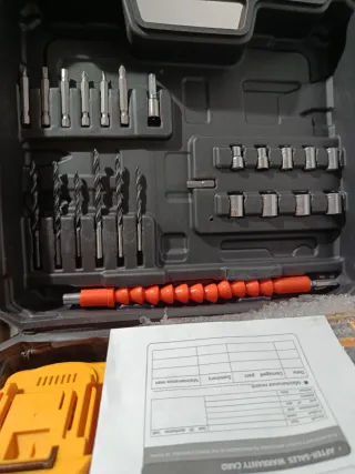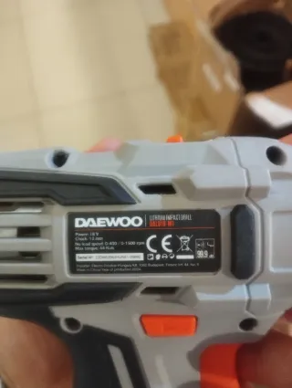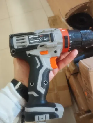 Taladro atornillador de la marca Daewoo. - Diseño ergonómico en gris, negro y naranja. - Portabrocas con ajuste de torque. -viene con batería y cargador qué compré ,no estaban incluido