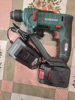 Taladro percutor Parkside en buen estado, listo para usar. - Incluye taladro percutor. - Batería Parkside X20V TEAM 2.0Ah. - Cargador Parkside. - Color verde y negro.