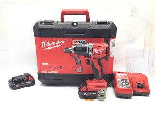 Taladro percutor Milwaukee de 18V con dos baterías de 2.4Ah, incluye caja. Para revisar, a veces no funciona. - Modelo M18. - Incluye cargador. - Batería de 43.2Wh.