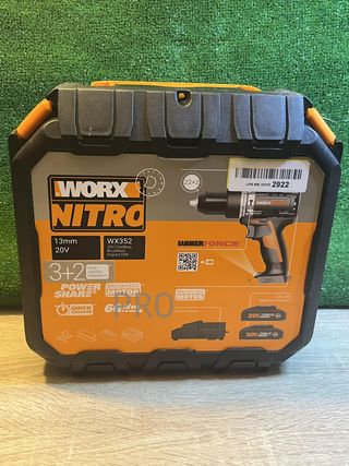 WORX Taladro Percutor a batería 20V Máx | WX352 | Motor sin escobillas | Power Share | 2 baterías de 2Ah | Cargador y maletín | Portabrocas metálico, carcasa de engranajes metálica