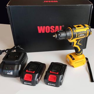 (NUEVO A ESTRENAR) -Atornillador taladro Wosai con motor brushless sin escobillas de 20V y 45Nm -2 baterías de Li-ion 50V (2.0Ah) y cargador -2 velocidades 1-400/0-1500, portabrocas 10mm PAR 25+1 -Luz LED