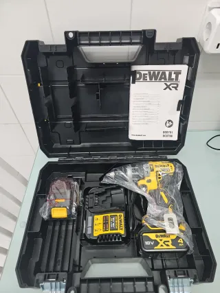 Se vende taladro DeWalt DCD796M2 con dos baterías y su maletín. Nuevo a estrenar - Incluye taladro DeWalt DCD796M2. - Dos baterías DeWalt XR 18V 4.0Ah. - Cargador DeWalt. - Maletín de transporte. No tiene garantía