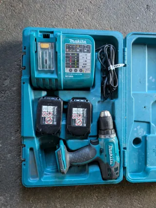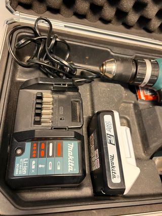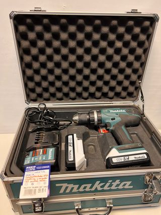 Se vende taladro a batería Makita en su maletín. - Incluye cargador DC18RA. - Dos baterías Makita Li-ion. - Maletín de transporte.