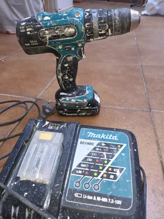 Se vende taladro inalámbrico Makita, junto con su batería y cargador. - Modelo de taladro: DHP453 - Modelo de cargador: DC18RC - Voltaje de batería: 7.2-18V