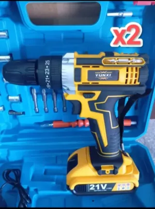 🔴 SOLO ENVÍOS 🔴 2 unidades 👈 Nuevos a estrenar. En su maletín Taladro atornillador inalámbrico multifuncional con batería recargable de 21 V. Con una batería de 2000 mAh. Par de apriete de 30 Nm con 25+1 ajustes del par. De 0 a 650 rpm. Atornillador y desatornillador. Con función de percutor. Taladro. Luz LED. Incluye todo lo que aparece en las imágenes. Color amarillo. Unidades disponibles,para más cantidades consultar.
