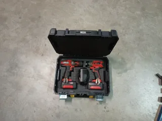 Taladro a batería en su maletín original. - Incluye dos baterías. - Cargador. - Juego de brocas y puntas.