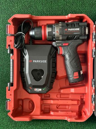 Taladro atornillador percutor recargable Parkside de 12V. - Motor sin escobillas (Brushless Motor). - Velocidad nominal de giro: 0-450 / 0-1500 rpm. - Frecuencia de impacto: 22500 min-¹. - 13 niveles de par de giro y 2 niveles de percusión. - Mandril de sujeción rápida de metal. - Incluye maletín. - Batería y cargador incluidos. tags: Lidl, Bosch, Maquita, Dewalt, Stayer, Inverter, Hilti, Worx, Metabo, Einhell, carpintero, carpintería, batería, pintór, pintura, reforma, obra, metal, percusión, radial, amoladora, sierra caladora circular laser, compresor, llave, atornillador, atornilladora, soldar, soldadura, aparato, pistola, grap