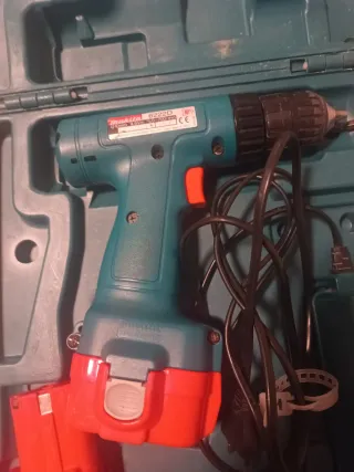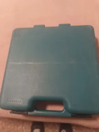 Maletín para taladro Makita. Color verde. - Maletín de plástico resistente. - Asa para transporte. - Cierres de seguridad. - Para cambiar las baterías lleva dos baterías pero no sirve ninguna