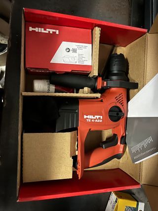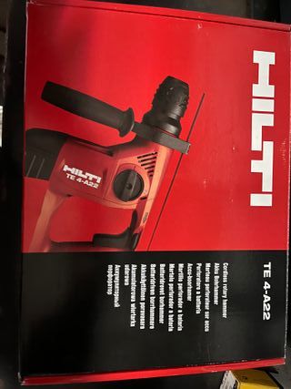 Se vende taladro percutor Hilti TE6-A de 36V, ideal para trabajos de construcción y bricolaje. Se incluye el taladro, su maletín original, un cargador y una batería. - Taladro percutor Hilti TE6-A. - Voltaje: 36V. - Incluye maletín de transporte. - Incluye cargador. - Incluye batería.