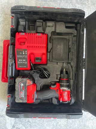 Se vende taladro Milwaukee M18, en buen estado, con su batería y cargador. - Incluye taladro Milwaukee M18. - Batería M18 RED LITHIUM 5.0 Ah. - Cargador Milwaukee M12-18C.