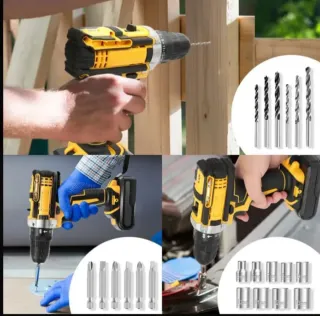Taladro inalámbrico YUNXI de 21V, ideal para trabajos en casa o profesionales. Incluye una amplia variedad de accesorios para diferentes tareas. - Taladro inalámbrico YUNXI 21V. - Atornillador inalámbrico. - Taladro inalámbrico con percutor. - Batería de litio. - Cargador. - Juego de brocas. - Juego de puntas. - Juego de vasos. - Maletín de transporte.