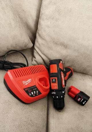 Taladro inalámbrico Milwaukee de 12V, ideal para trabajos en casa o profesionales. Incluye cargador. - Taladro de 12V. - Cargador Milwaukee. - Batería de 2.0Ah.