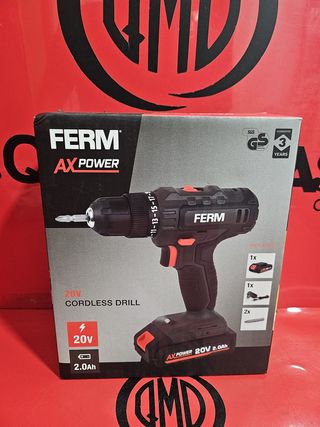 Taladro / Atornillador FERM AXpower 20V, Nueva. Somos tienda fisica, damos 2 años de garantia. - Incluye batería de 2.0Ah. - Cargador de batería. - 2 puntas de atornillar.