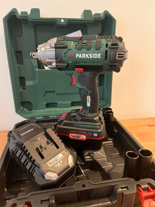 Taladro de impacto Parkside Incluye 1 bateria de 4Ah y 1 cargador de 4.5 A - Incluye maletín de transporte. - Incluye 4 vasos. - Batería 4Ah de 20V. - Cargador rápido 4.5A Envios a traves de Wallapop