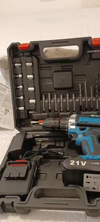 Taladro 21V con 2 Baterías, Cargador y Maleta