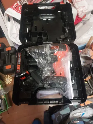 Taladro percutor Black+Decker de 18V, ideal para trabajos en casa. Se entrega en su maletín original. - Incluye batería de 1.5 Ah. - Cargador de batería. - Manual de instrucciones.