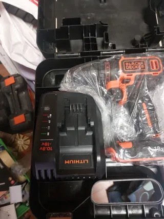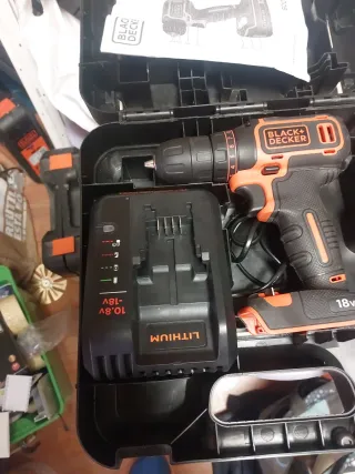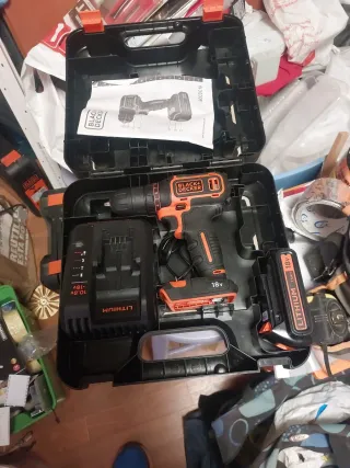Precio fijo! Taladro atornillador Black+Decker con tecnología Brushless. - Potencia 52 Nm - Modelo: 18V Lithium Power Connect. - Color: Negro y naranja. - Batería: 1.5 Ah. - Se vende con prueba. - Cargador incluydo