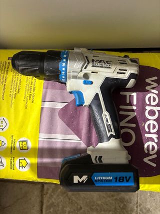 Taladro a batería MAC ALLISTER de 18V. - Modelo: MAC ALLISTER - Voltaje: 18V - Sistema: LITHIUM SYSTEM - Empuñadura: SURE GRIP Maleta y cargador.