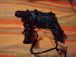 Taladro percutor de la marca Dexter. - Color azul y negro. - Incluye mango auxiliar. - Cable de alimentación.