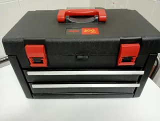 Caja de Taladro Percutor Lijadora marca SKIL 550 Watt con un total de 200 piezas, perfectamente organizadas por tamaños y usos. Incluye candado con llave y accesorios de lijadora. MUY POCO USADO y perfectamente conservado .Recogida en mano en Barakaldo.