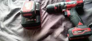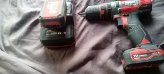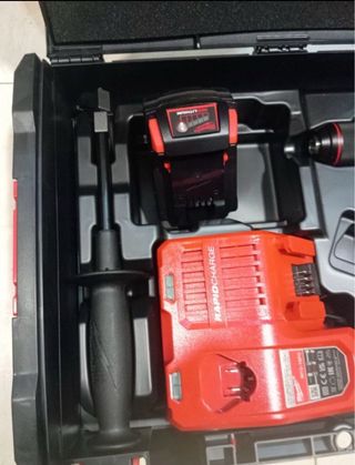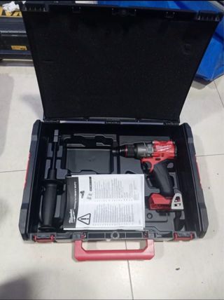 Taladro percutor inalámbrico Milwaukee M12 FUEL. - Incluye taladro, cargador y dos baterías. - Manual de instrucciones.