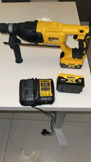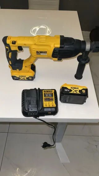 Se vende taladro percutor inalámbrico Dewalt de 18V, junto con su cargador y dos batería. - Taladro percutor Dewalt 18V. - Cargador Dewalt. - Batería Dewalt XR 18V 5Ah.