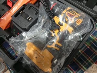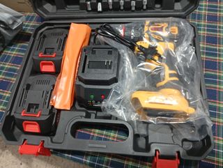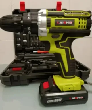 Taladro atornillador inalambrico con accesorios. Baterías recargables. Par de torsion de 45N.m con 25+3 ajustes del par. Función taladro, atornillador y percutor con giro en 2 direcciones. Mandril de 3 mandíbulas sin llave y luz led. -Taladro atornillador inalámbrico. -2 Baterías recargables. -Cargador. -Juego de brocas. -Juego de puntas planas y estrella. -Juego de vasos. -Extensión flexible. -Maletín de transporte. 📝Para otras cantidades contactar.